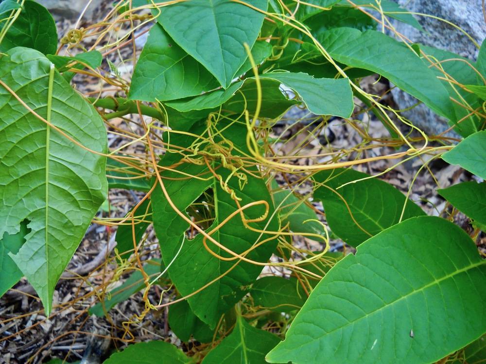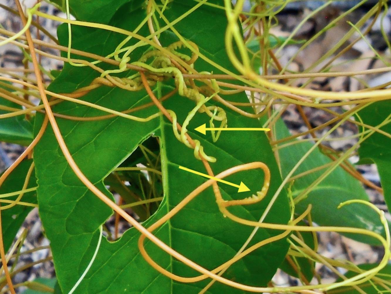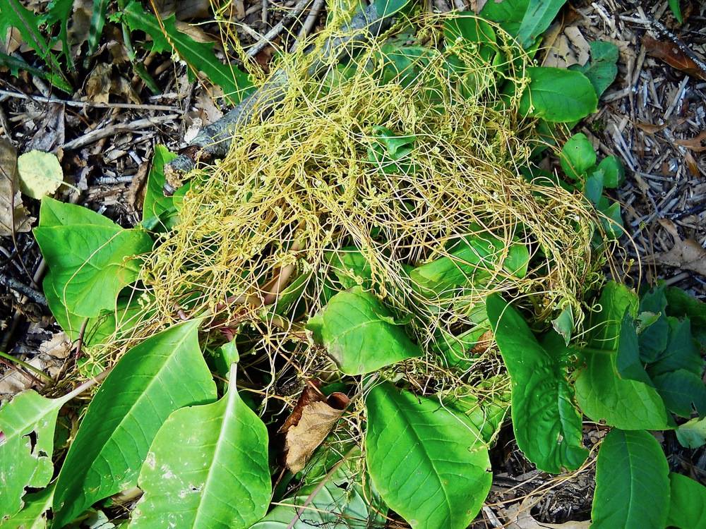 The common dodder is an annual climber that is a relative of the morning glory. It is an obligate parasite which means it takes everything it needs to grow and reproduce from another plant, often causing the demise of its host. It is native to most of North America, and is naturalized in Central Europe. Masses of its yellow to orange stems are most often draped over plants in sunny but moist habitats such as damp thickets, floodplains, roadsides, and swamps.