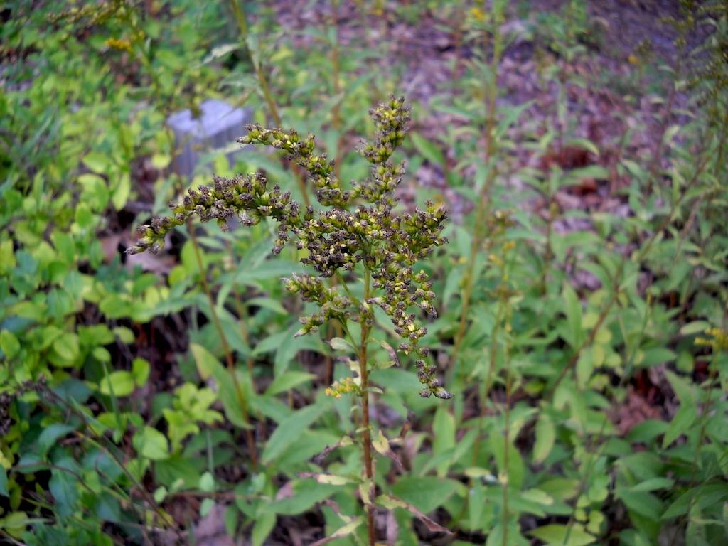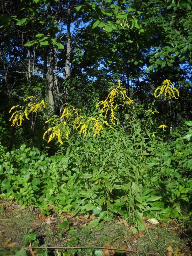 As suggested by its common name, the native perennial early goldenrod is the first goldenrod species to flower at Salter Grove. It is easy to distinguish from the others even when all goldenrods are flowering because it tends to be shorter and characteristically has leaves growing at its base. There is a healthy patch of this species along the Upland Trail near marker U9.