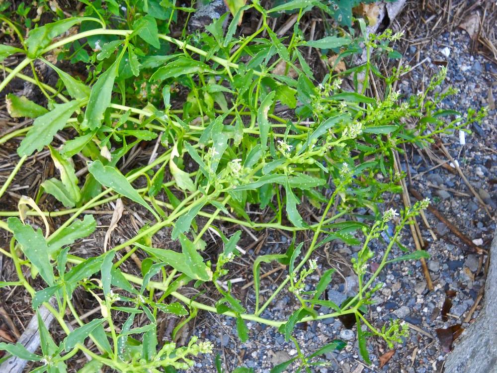 At Salter Grove, small unruly clumps of sea-rocket occur on both sides of the high tide line along the Marsh Trail. The elongate succulent leaves and sprawling branches appear able to withstand occasional submersion during exceptionally high tides.