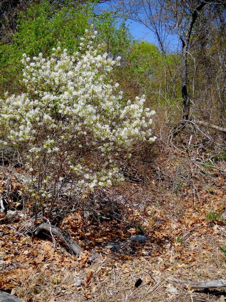 The Canadian serviceberry has the form of a tall shrub or small tree. It is native to eastern North America and has been associated with various folktales and stories for hundreds of years. In New England, it was thought that by the time it bloomed the ground would have thawed enough for digging and funeral services were planned for those who died in the winter and hence its name 'serviceberry'. In the Hudson River Valley, the blooming coincided with the massive spring run of shad upriver to spawn and there, its common name is the 'shadbush'.