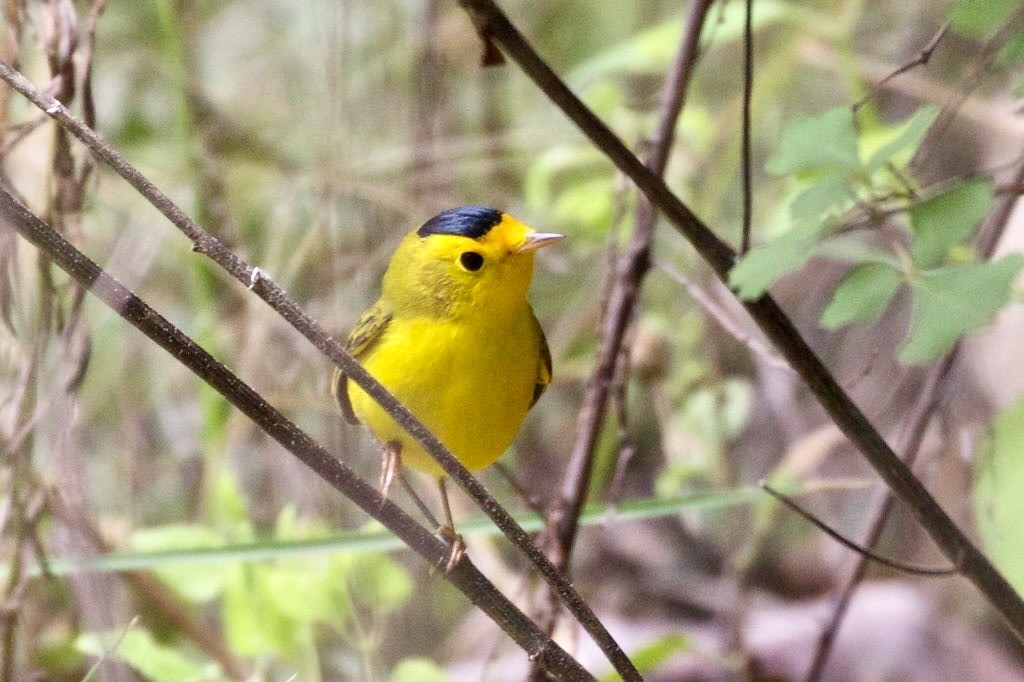 Bird data for Salter Grove started in 2002, but the Wilson's Warbler was only recorded for the first time at Salter Grove in May 2024. A small yellow bird flitting actively high up in canopy foliage near Upland Trail marker U4 was first thought to be a Yellow Warbler, a slightly larger species that comes to breed in the park every year. However, the black cap that soon came into view and the song heard positively identified it to be a male Wilson's Warbler.