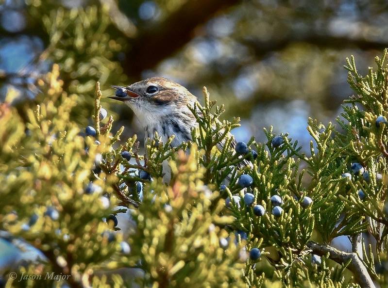 The Yellow-rumped Warbler is primarily insectivorous and must migrate south as insect populations decline on its breeding grounds. However, its unique ability to digest the waxy fruits of small bayberry, cedars, junipers, and wax myrtle (southern bayberry) allows it to have a more northerly wintering range than warblers feeding only on fleshy fruits.