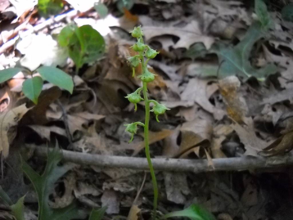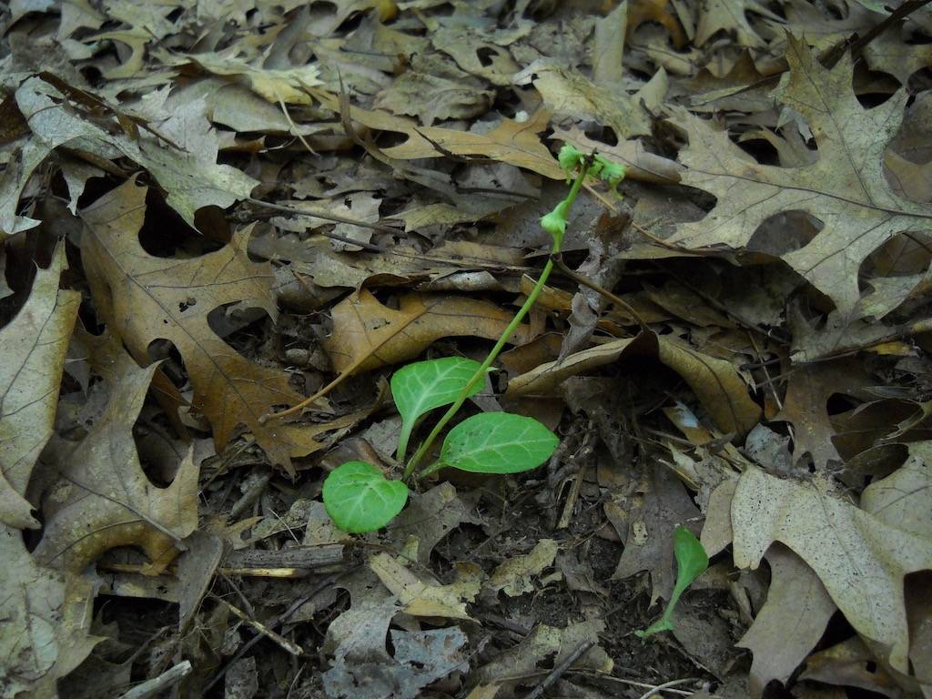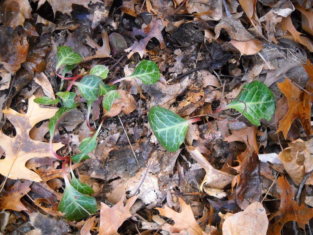 This native evergreen forb grows beneath a thick layer of fallen black oak leaves in the upland portion of Salter Grove. Although it is widespread in the Northeast, it is not easily or commonly seen in Rhode Island forests. The leaves of the American shinleaf at Salter Grove have light color veins but populations growing elsewhere may have leaves that are all green. Based on its floral structure, the American shinleaf is in the same family as the blueberry.