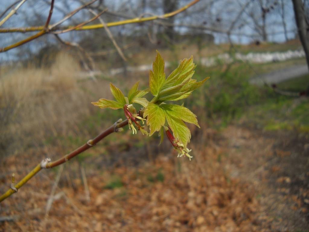 The existence of so many other common names for the ash-leaved maple in North America indicates how widespread this native tree is. It is the only North American maple with compound leaves. Unlike most other native maples, it is a dioecious species. This means a given tree has either male flowers or female flowers but not both. Consequently, seed production depends on whether female trees are positioned to capture the wind-borne pollen from male trees. The two male and three female ash-leaved maples at Salter Grove are relatively distant from one another but grow in relatively open habitats where pollen dispersal and capture have occurred successfully to result in seed production.