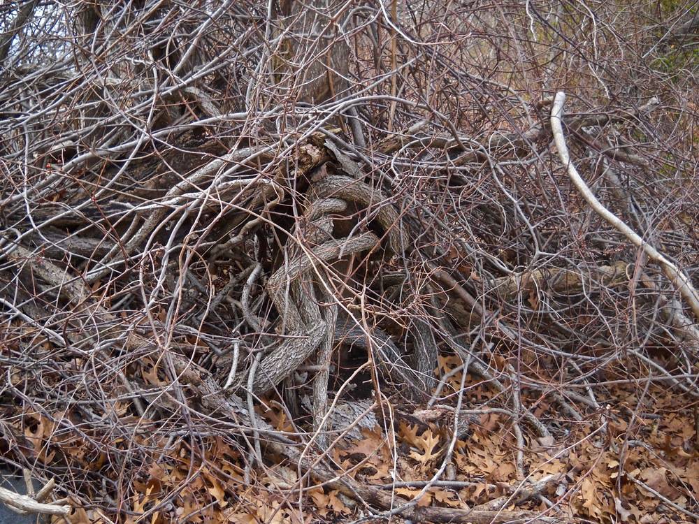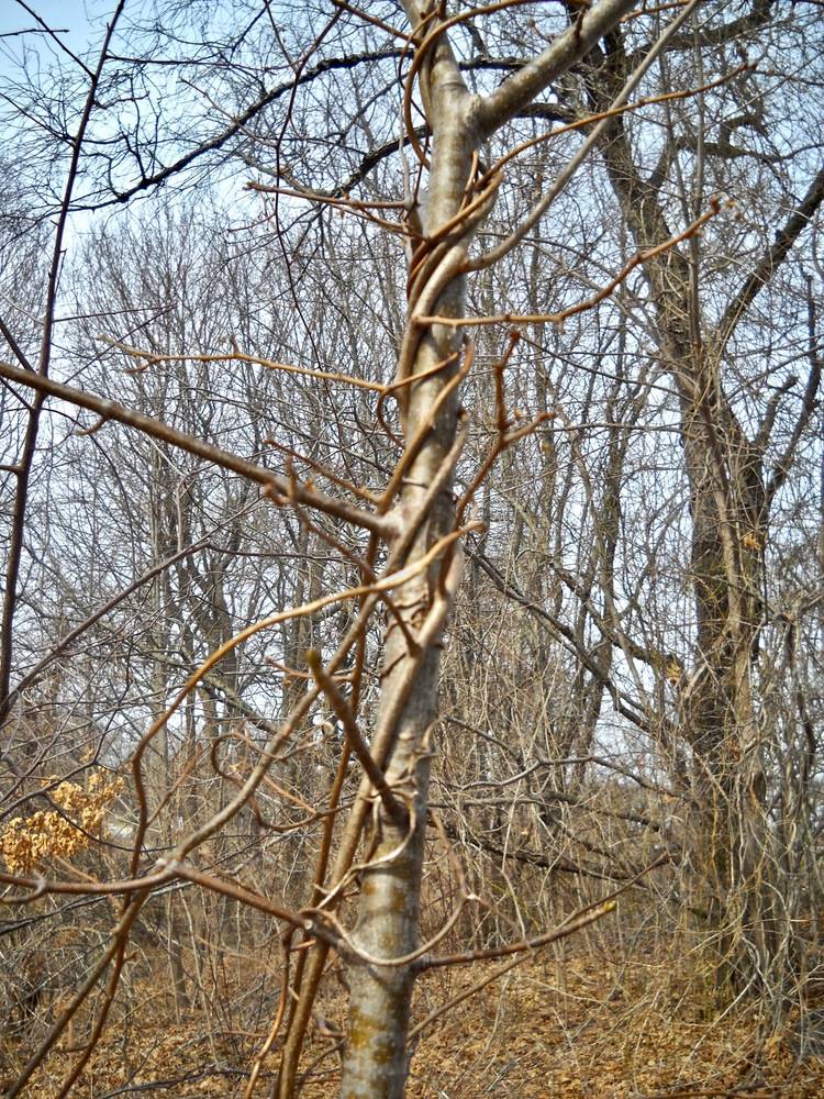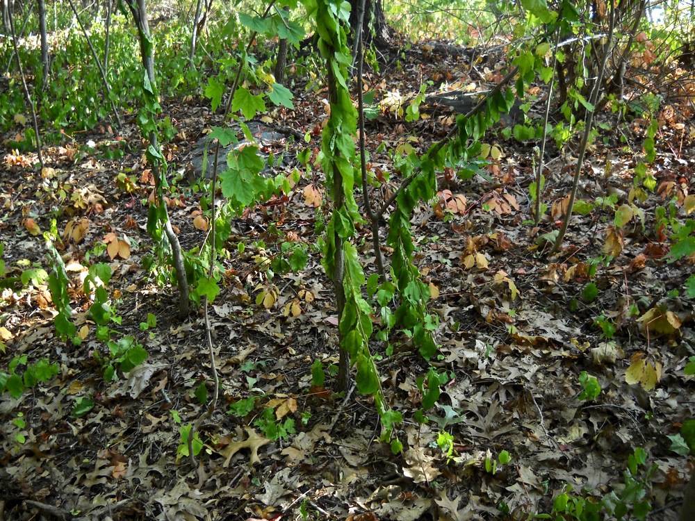 If we were to compare abundance of woody plants at Salter Grove, the Asian bittersweet would clearly be the winner. It is the most successful of all the introduced species in the park. Stems of various sizes can be seen along all the trails of the park.