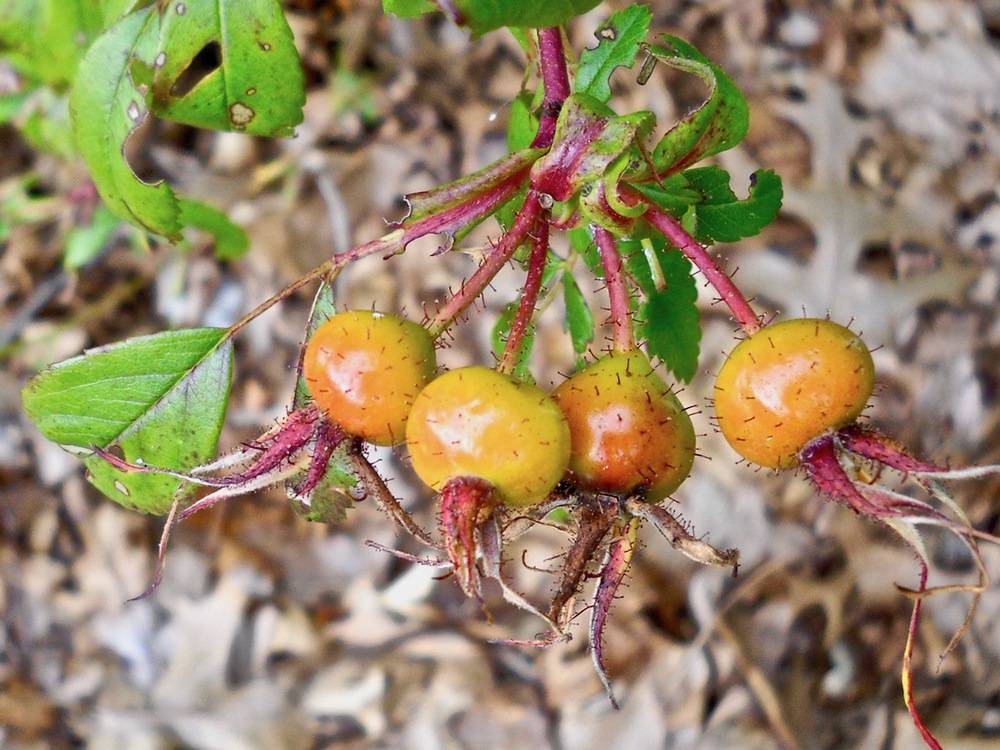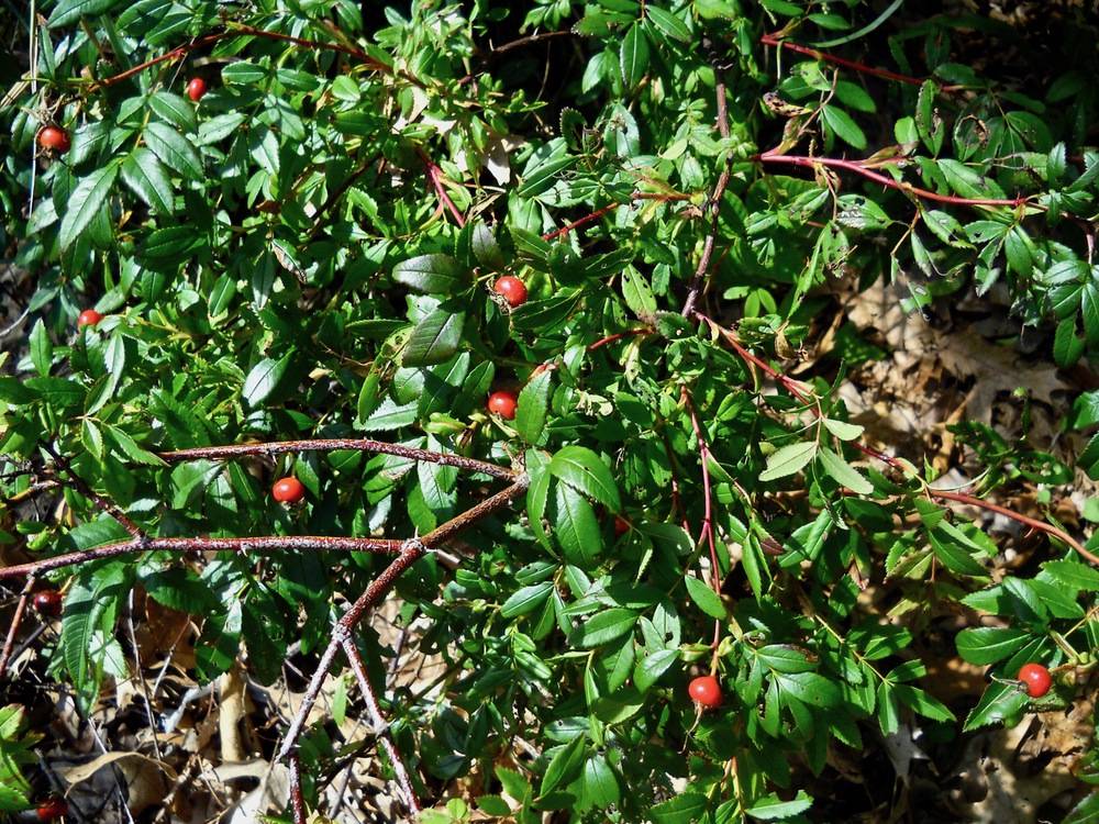 The Carolina Rose is a prickly shrub native to eastern North America. It occurs in a wide variety of open habitats where birds are likely to visit, such as abandoned fields, fence rows, the edge of woodland and prairies, roadsides, and along railroads. It appears to handle dry and wet soils equally well since it is found on dunes as well as along stream beds.