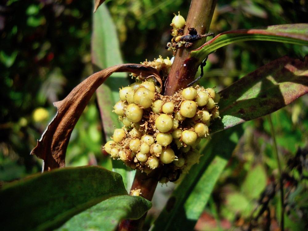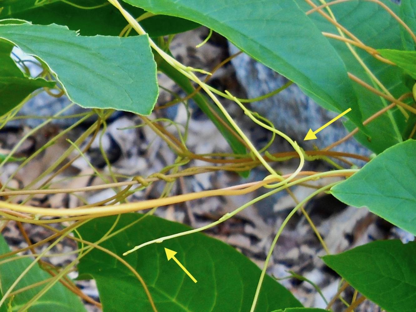 Like many other annual plants, the precise locations of dodder plants are not predictable from year to year at Salter Grove. However, the yellow-orange tangles of common dodder are reliably observed along the causeway and the Marsh Trail starting in July. Within the park, observed host plants include American pokeweed, Japanese knotweed, jewelweed, maritime marsh elder, and the seaside goldenrod.