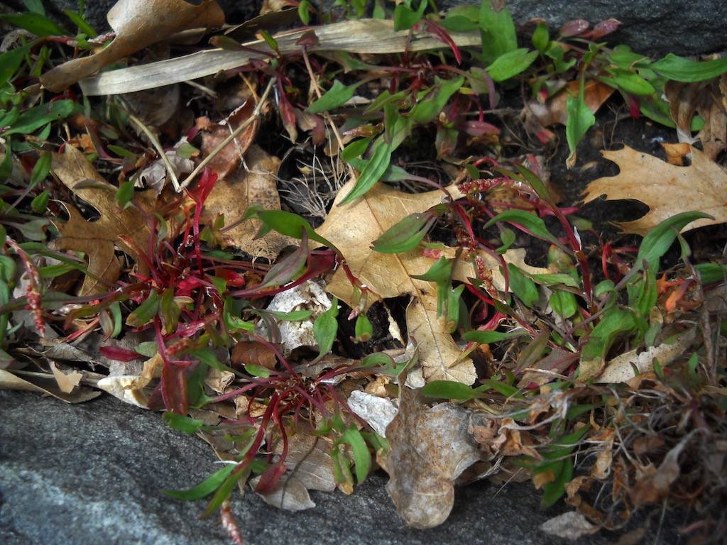 A patch of the common sheep sorrel can be quite pretty because of the tiny reddish flowers growing along the slender green stems that sway in unison in the breeze. At Salter Grove, it can be found in areas of the lawn that regularly escapes mowing, such as alongside boulders or large dips in the ground.