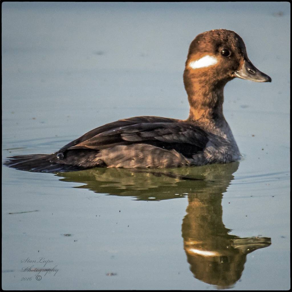 At a distance, this small merganser may be confused with the similarly small Bufflehead which dives energetically for invertebrates. The male of both species has a large patch of white on the head behind the eye. Luckily, female plumage helps to distinguish between the two. The female Hooded Merganser has a head that is all reddish brown whereas the female Bufflehead has a small but conspicuous white cheek patch.