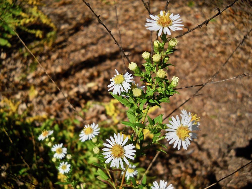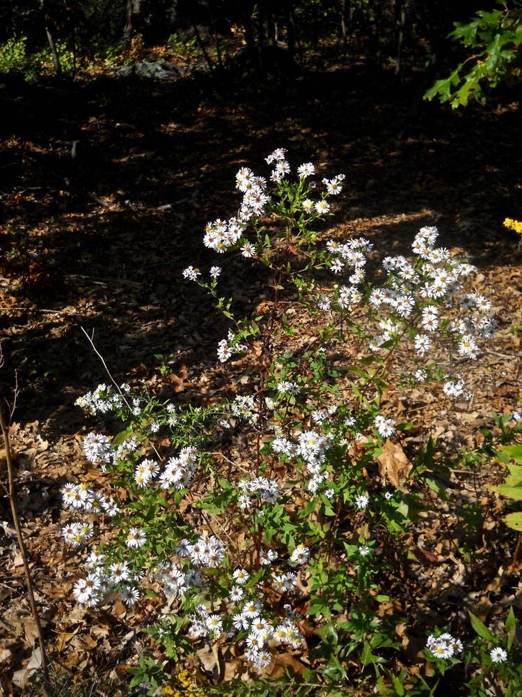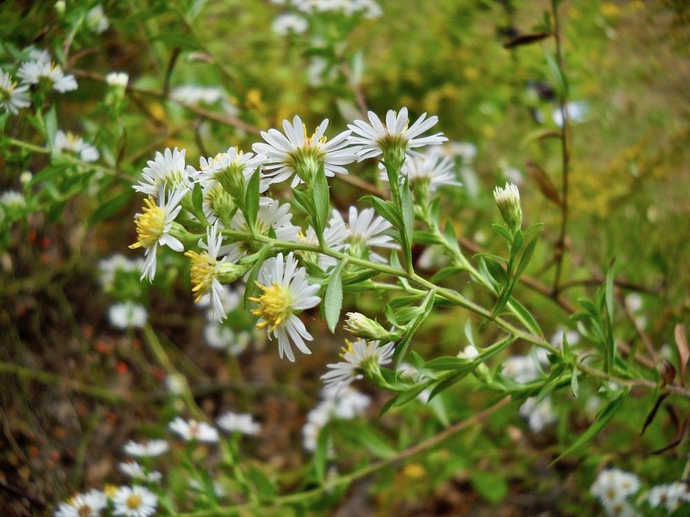 At Salter Grove, clumps of lance-leaved American-aster can be found growing near trail marker U10 by the boat launch, and in scattered locations throughout the park. It is usually found along edges of woodland where several hours of full sun exposure results in tall plants. Shaded individuals tend to be short and somewhat sprawling. The masses of white flowers produced are visited by large numbers of bumblebees and other insects during September and October when few other plants are flowering.