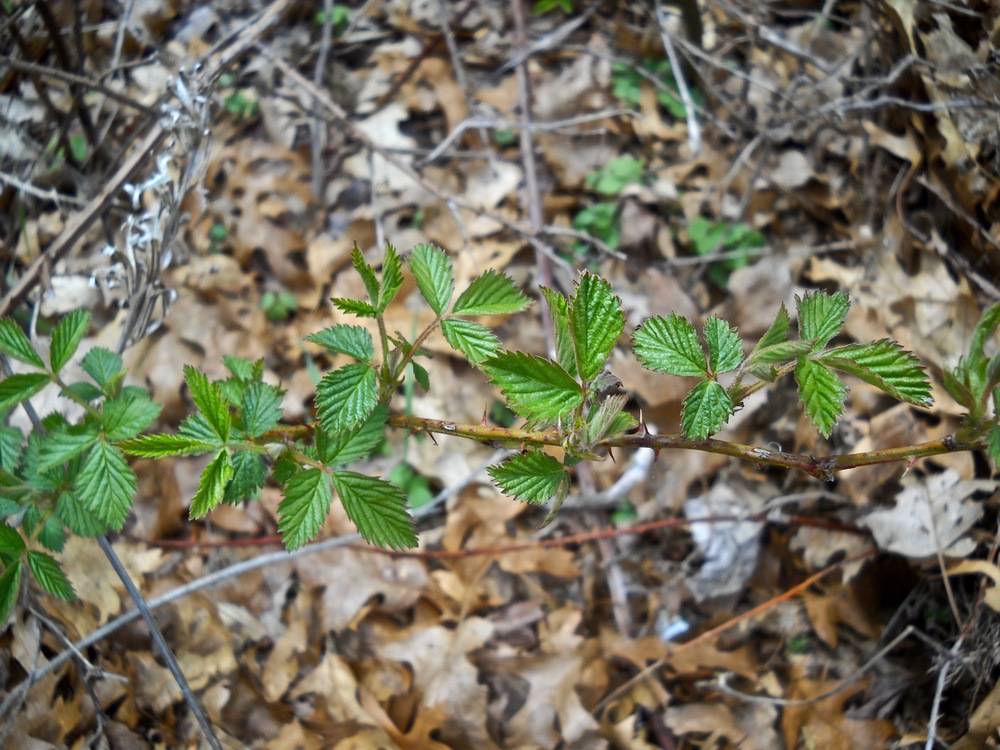 The leafy-flowered blackberry is a member of the rose family and is native to eastern and central North America. It typically has erect or long arching canes that are armed with stout spines. Once established, plants growing in favorable conditions often form impenetrable thickets. The term bramble is often used to describe this growth habit and is applied to other shrubby members of the rose family as well. When unmanaged, this species readily colonizes sunny waste areas with poor soils to the exclusion of other plants.