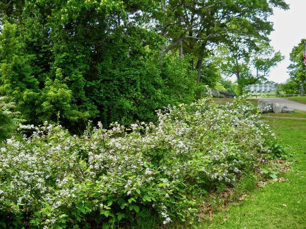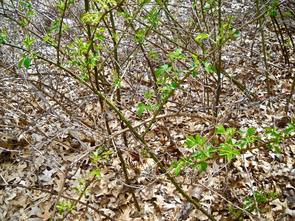 At Salter Grove, two patches of leafy-flowered blackberry thrive on the lawn southwest of the parking lot. There is a third patch along Narragansett Parkway just north of the entrance into the park. There are also scattered individuals in the upland woods, probably brought in by birds. However, because of limited light in the understory these isolated individuals tend to be rather small and spindly in form, and have not been observed to flower.