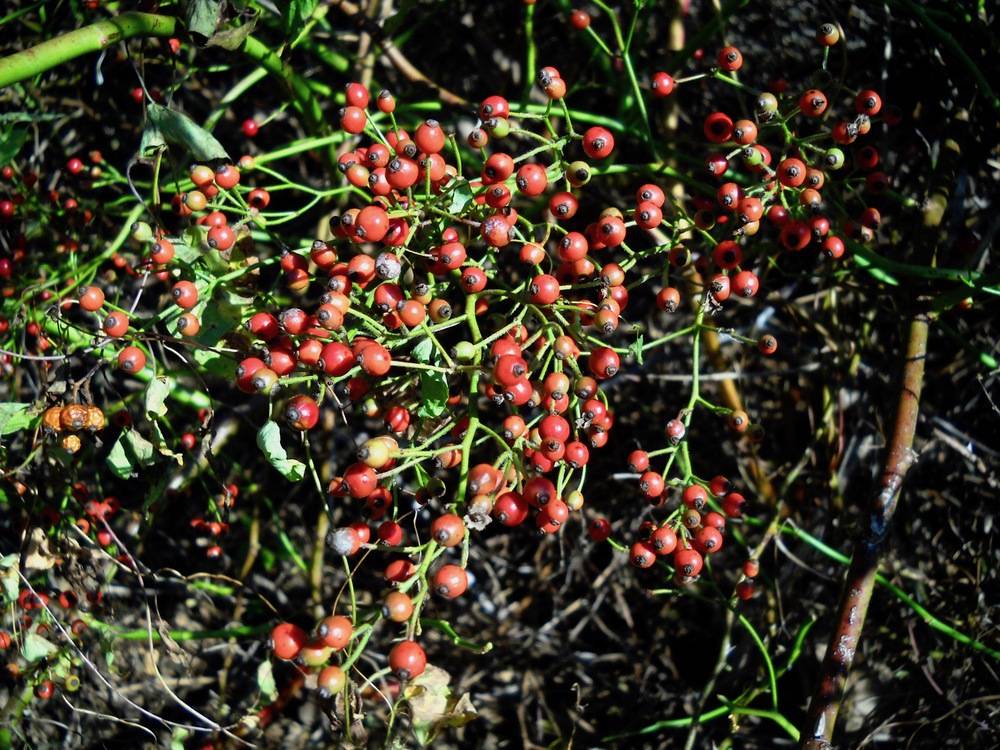 The common name used in this guide is one of several and refers to the ability of its long arching branches to establish roots on the ground as far as 15 feet from the original stem. Alternatively, the long branches latch onto taller vegetation nearby and continue to grow vertically, all the while sending out side branches. In sunny situations, a single plant can quickly grow into a thorny impenetrable thicket that is good for sheltering wildlife, but would exclude other plant life.