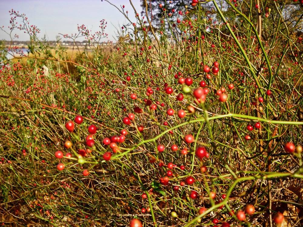Rambler rose is not as abundant as the Asian bittersweet at Salter Grove but there were some very large plants that covered the crowns of small trees. For the most part, it prefers higher ground that is sunny. Several individuals along the Upland Trail are monitored and routinely trimmed so they will not suppress the growth of other species.