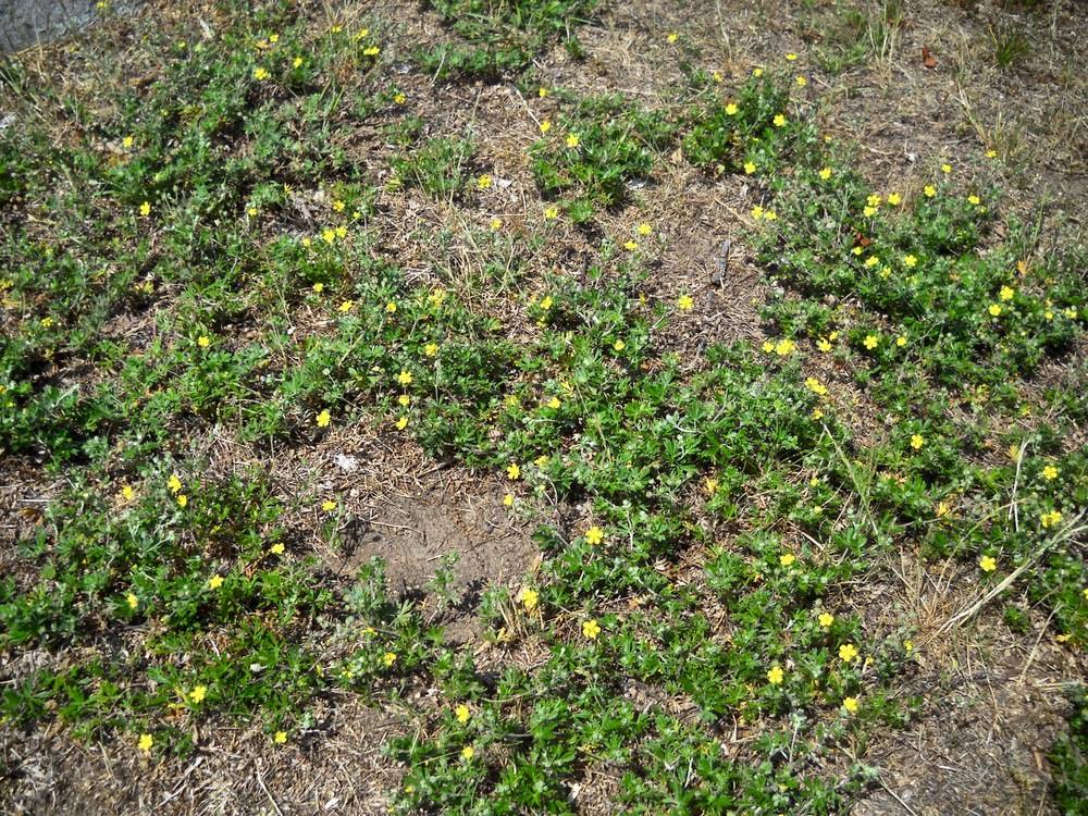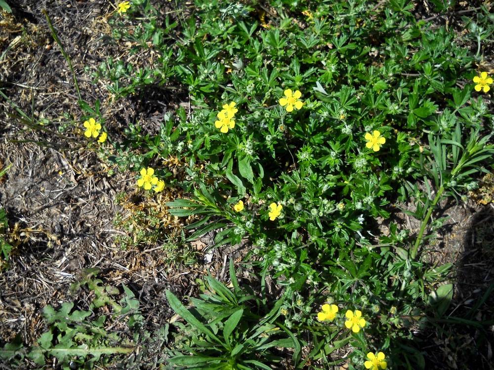 So called because of a whitish-silvery underside that contrasts with the otherwise dark green leaf, silver-leaved cinquefoil is an herbaceous member of the rose family. It is native to Europe, Asia Minor and Siberia where it naturally grows on rocky precipices. However, human activities have enabled its spread to similarly harsh anthropogenic settings such as roadsides, open sandy areas, dry yards, waste ground, and railway embankments.