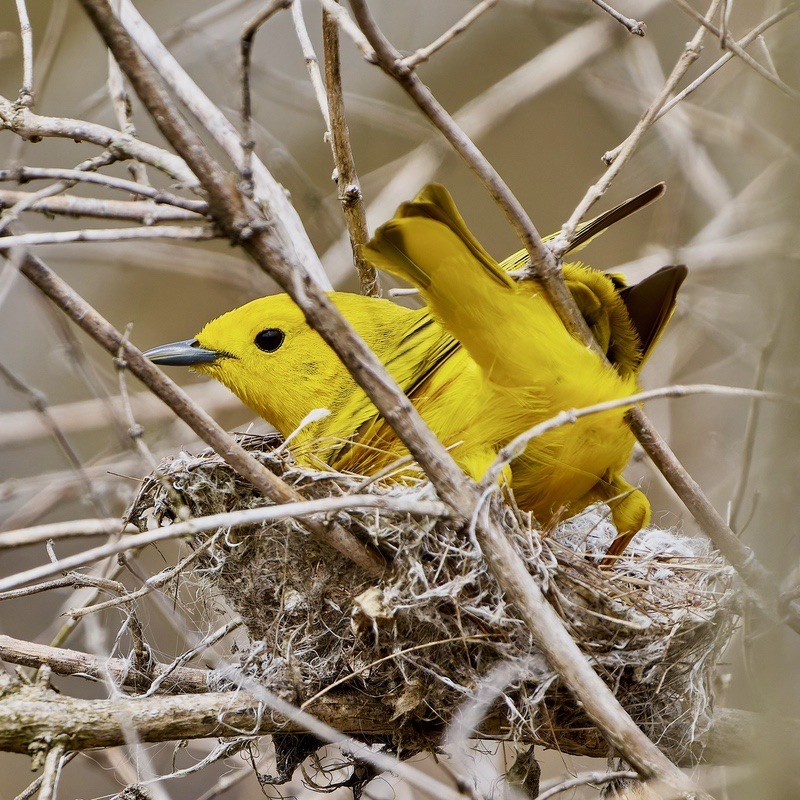 Because its nests are often along the edge of woody vegetation, it is a popular target of the Brown-headed Cowbird, a brood parasite that evades parental responsibility by laying eggs in the nest of other bird species. However, unlike other bird species that do not appear to perceive the reproductive threat, the Yellow Warbler takes action.
